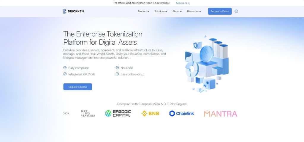 Brickken’s self-service enterprise tokenization platform lets mid-market issuers tokenize and manage real-world assets with built-in compliance and investor onboarding.