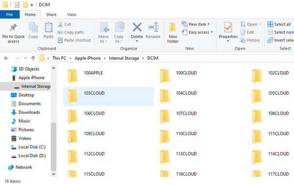 Step 2. You will see the Explorer windows of the DCIM folder pop up after the iPhone is successfully connected. All your photos are saved in the DCIM folder.